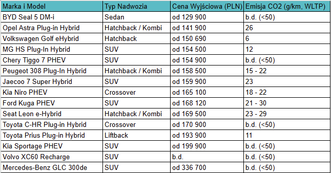 b) 150 000 zł – w przypadku pozostałych samochodów osobowych (spalinowych, hybrydowych) – jeśli emisja CO2 silnika spalinowego samochodu osobowego, określona na podstawie danych zawartych w centralnej ewidencji pojazdów, wynosi mniej niż 50 g na kilometr (w praktyce będą to jedynie hybrydy plug-in i to tylko niektóre modele)